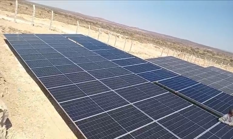 Solar-generator power system powering a water pumping station to quench the thirst of towns-people in Somaliland.